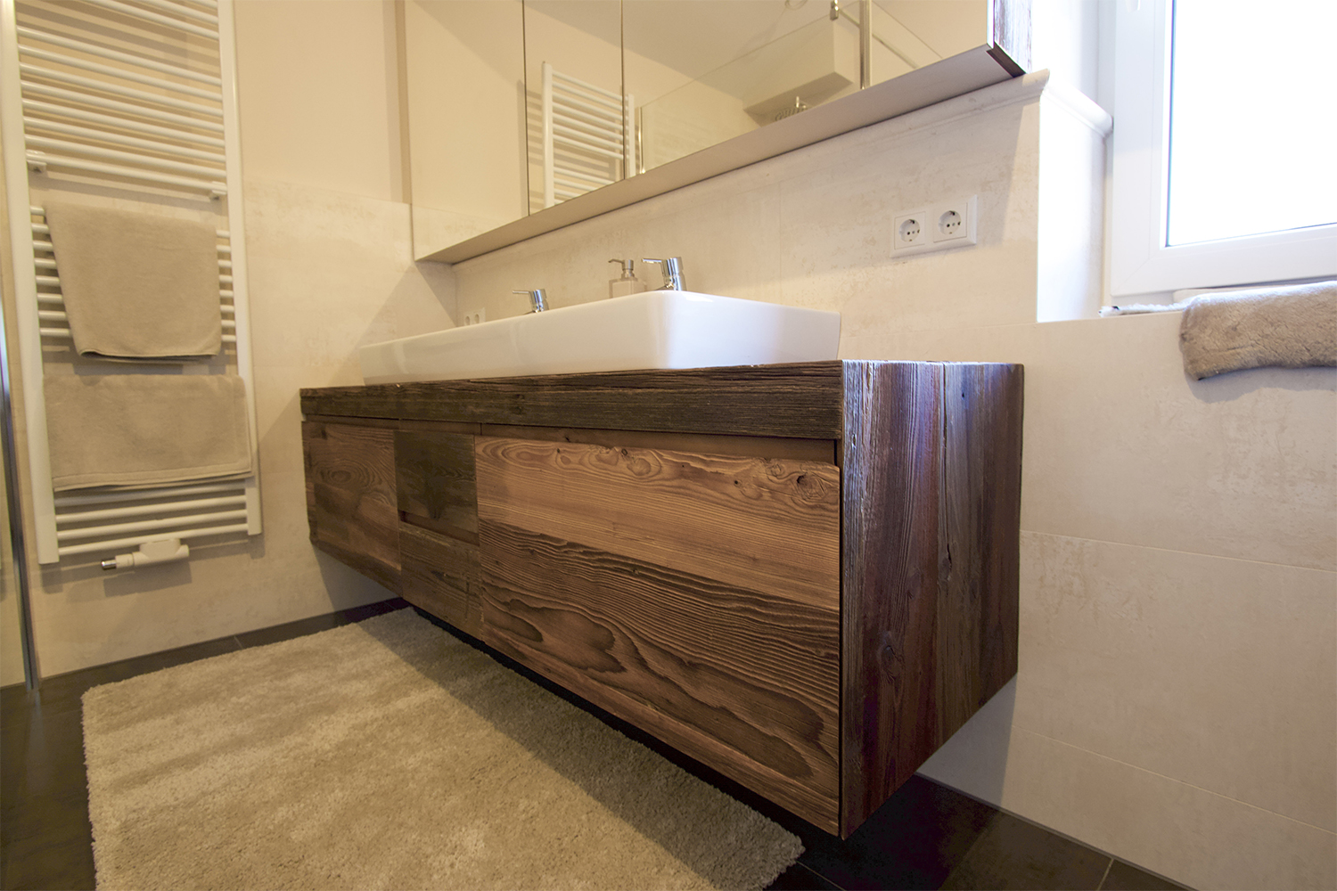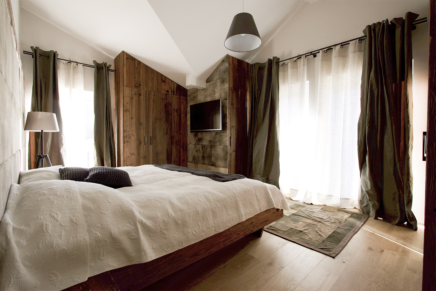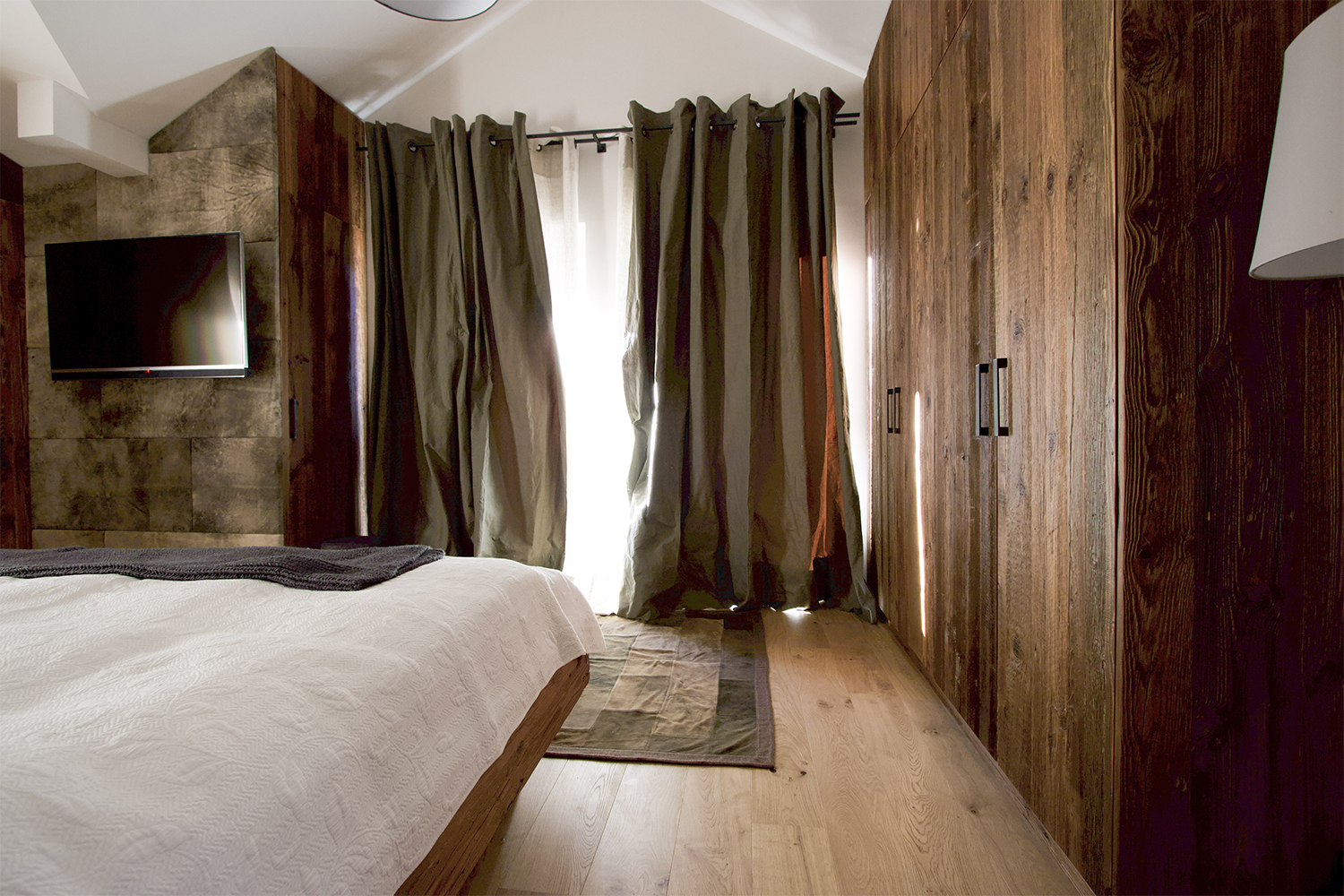 Bedroom: The bedheads are in Meindl deerskin and the beds and cupboards are in old wood. The homely style was also continued in the bathrooms.