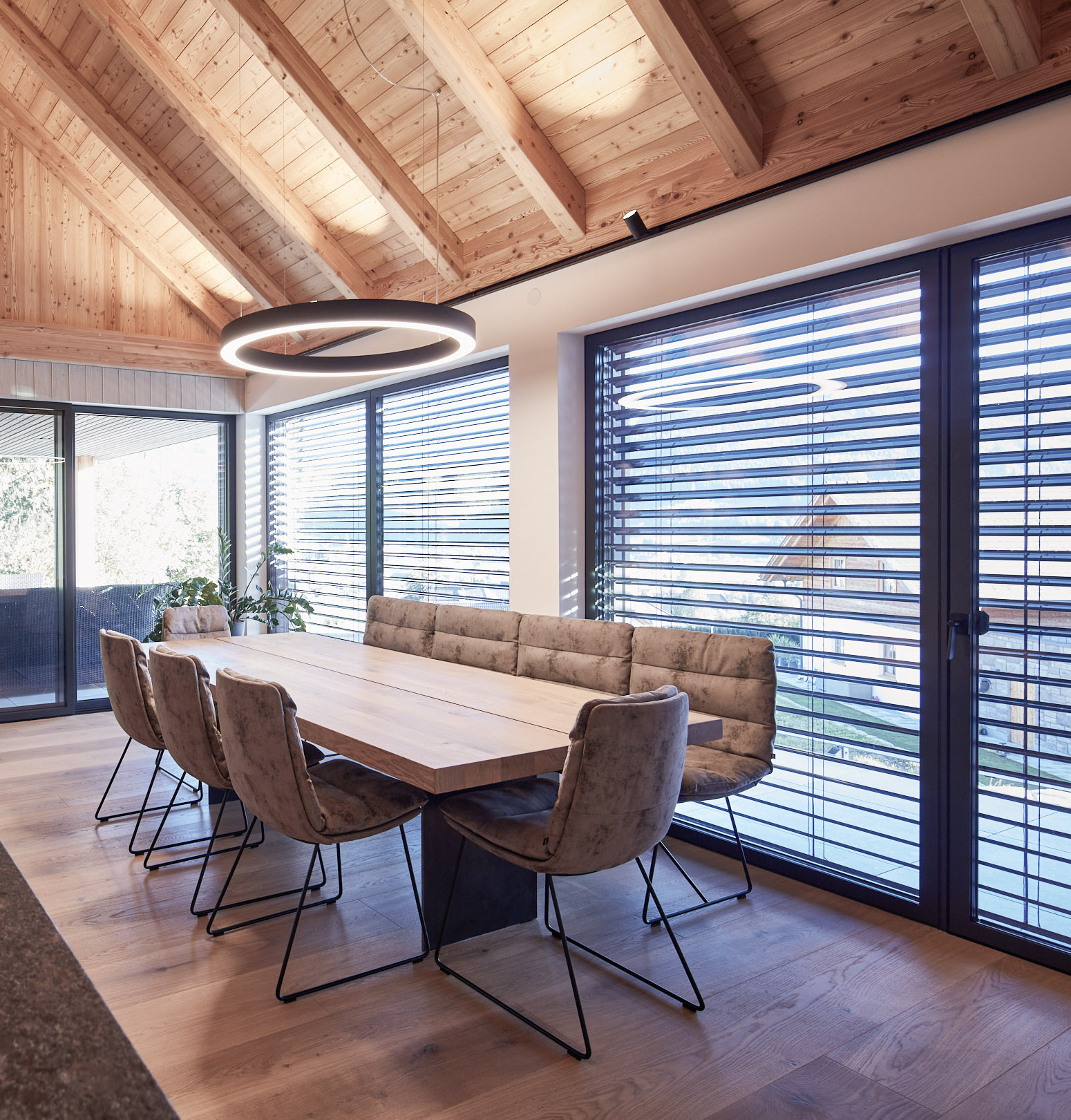 Die Beleuchtung in diesem Holzhaus wurde sorgfältig ausgewählt und fügt sich nahtlos in das Gesamtkonzept ein. Sie unterstreicht die Schönheit der Materialien und sorgt für eine angenehme Beleuchtung im gesamten Raum. Dieses Holzhaus in Tamsweg ist ein perfektes Beispiel für durchdachtes Design und hohe handwerkliche Qualität, das in jedem Detail erkennbar ist.