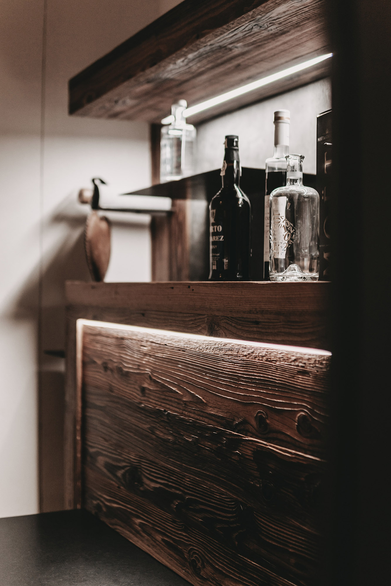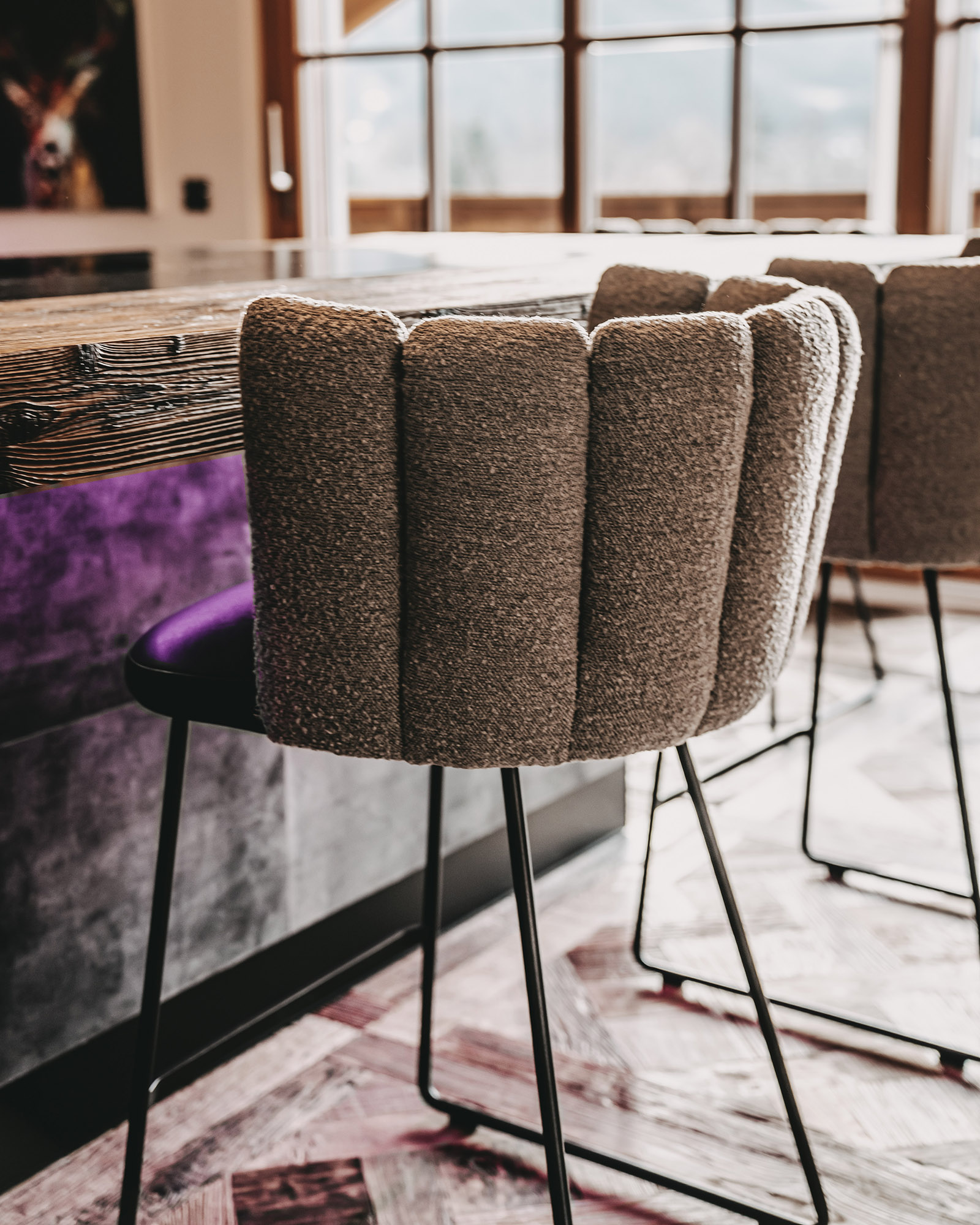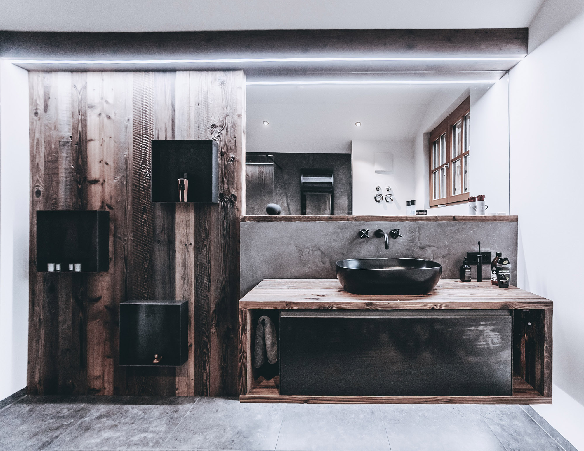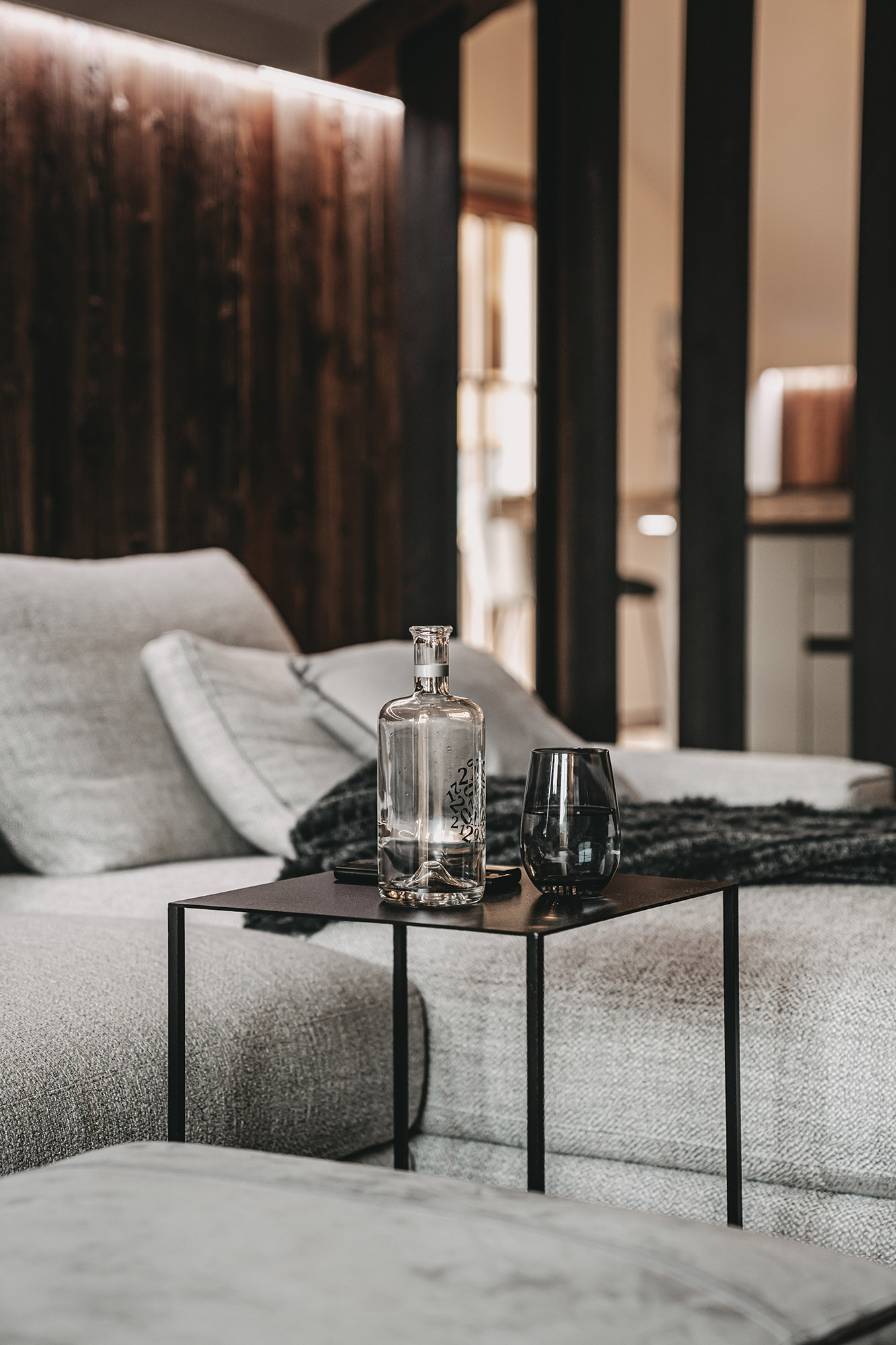 Willkommen in diesem beeindruckenden Penthouse in Berchtesgaden, gestaltet von Michael Sendlhofer von Sendlhofer Design GmbH. Hier vereinen sich traditionelle Elemente mit modernem Design zu einem harmonischen Ganzen. Der warme Parkettboden aus Altholz, die elegante Küche mit Barbereich, und gemütliche Barhocker schaffen eine einladende Atmosphäre. Rustikale Wandverkleidungen, eine moderne Couch von „Arketipo“, und das stimmungsvolle Schlafzimmer mit hinterleuchteter Altholzwand fügen sich nahtlos in das Gesamtkonzept ein. Besonders hervorzuheben sind der stilvolle Esstisch aus Eiche, umgeben von Leder- und Leinenstühlen, sowie der Designer-Lounger „Sinus“ von COR. Dieses Penthouse ist ein wunderschöner Wohnraum, der mit Liebe zum Detail gestaltet wurde und Tradition mit modernem Wohnkomfort verbindet.