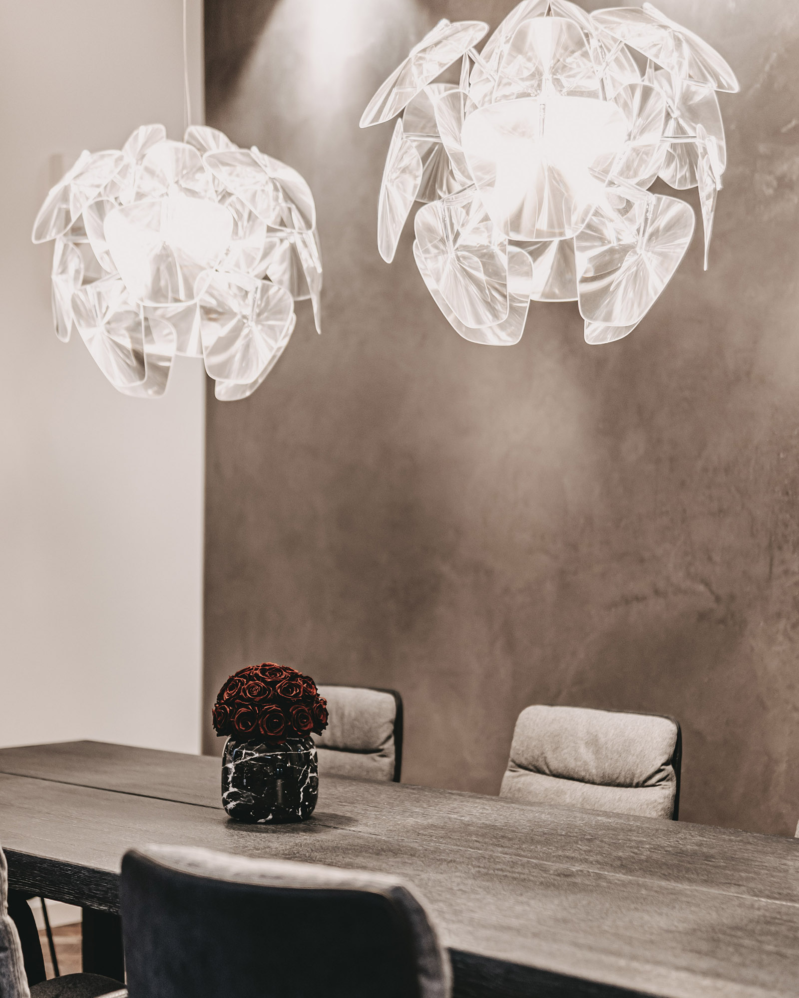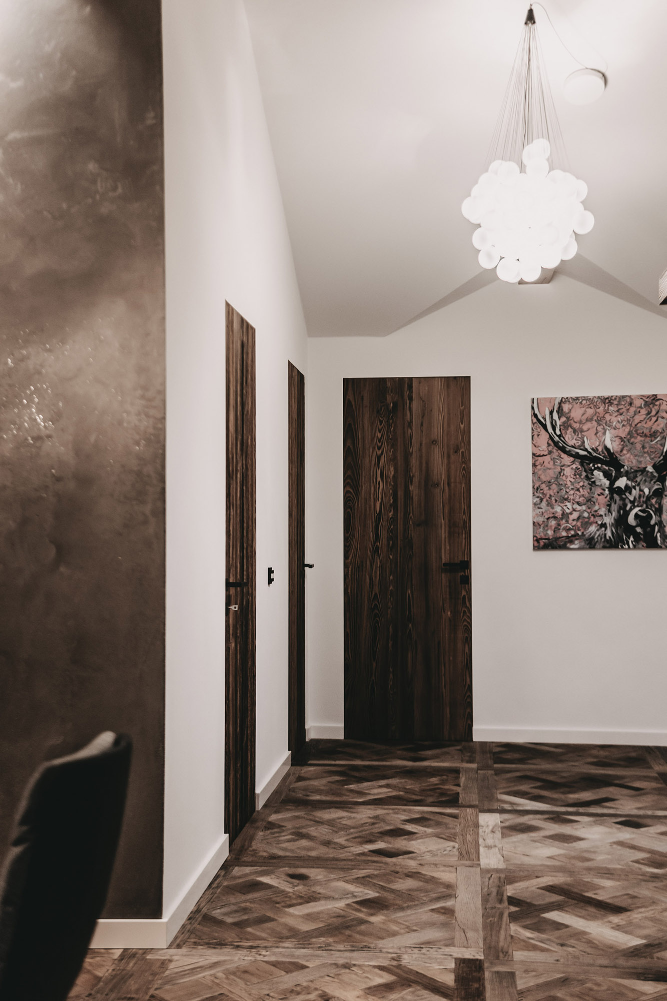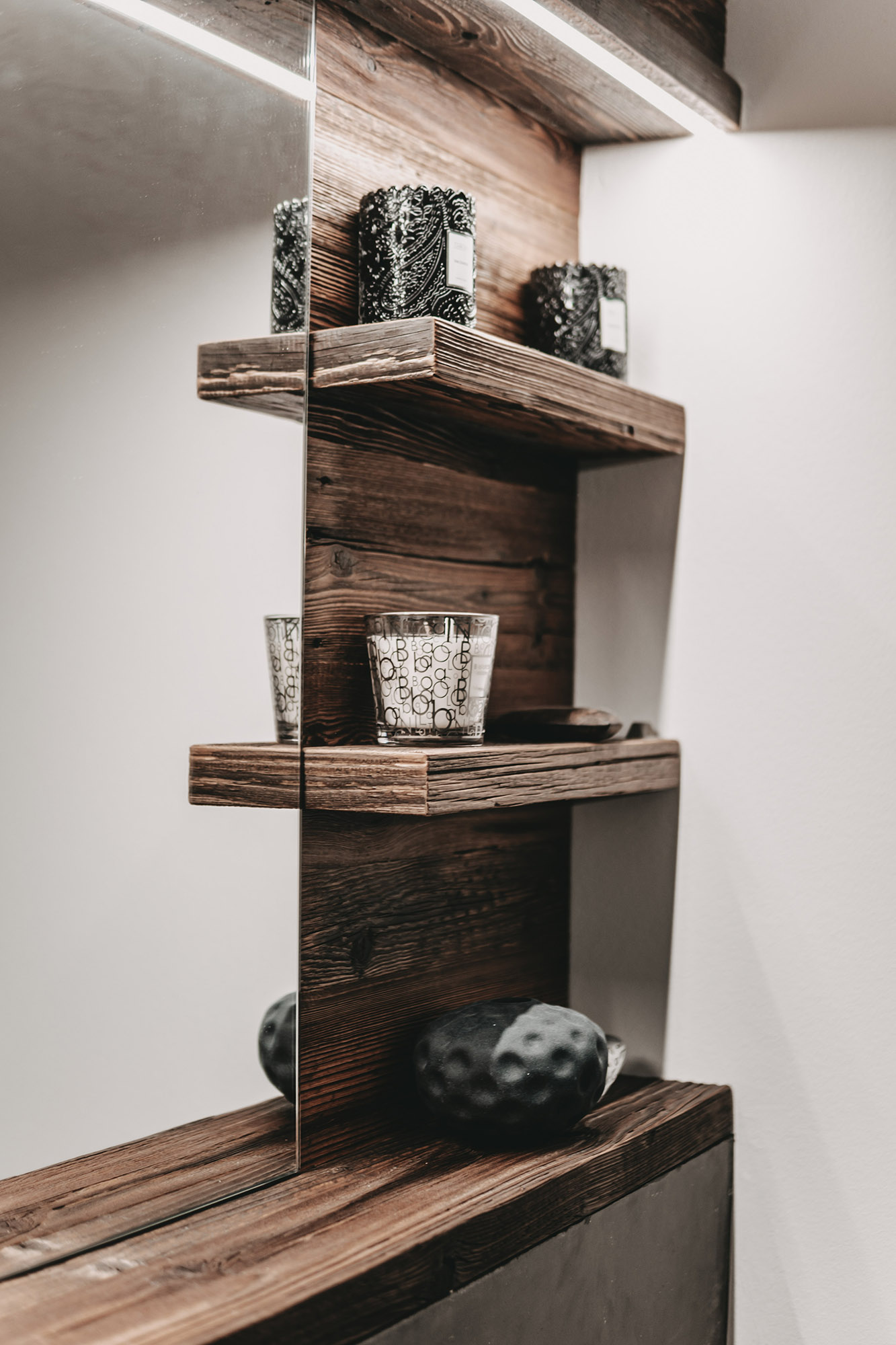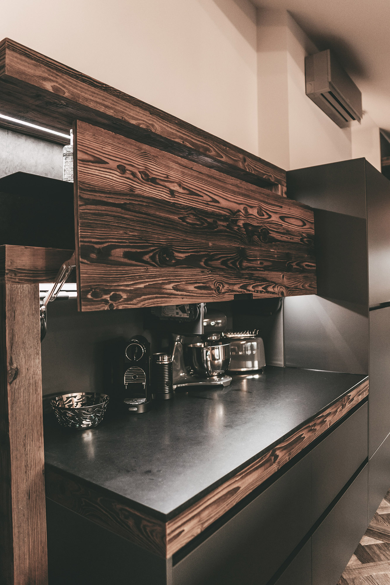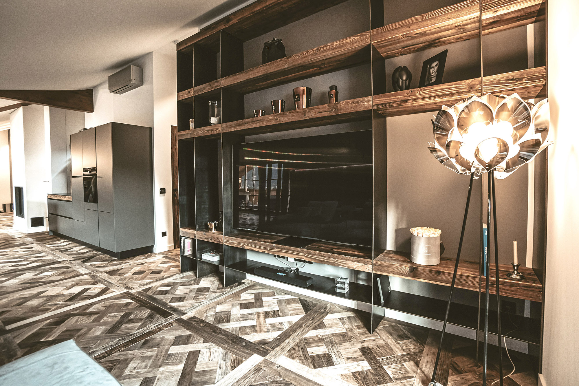 Willkommen in diesem beeindruckenden Penthouse in Berchtesgaden, gestaltet von Michael Sendlhofer von Sendlhofer Design GmbH. Hier vereinen sich traditionelle Elemente mit modernem Design zu einem harmonischen Ganzen. Der warme Parkettboden aus Altholz, die elegante Küche mit Barbereich, und gemütliche Barhocker schaffen eine einladende Atmosphäre. Rustikale Wandverkleidungen, eine moderne Couch von „Arketipo“, und das stimmungsvolle Schlafzimmer mit hinterleuchteter Altholzwand fügen sich nahtlos in das Gesamtkonzept ein. Besonders hervorzuheben sind der stilvolle Esstisch aus Eiche, umgeben von Leder- und Leinenstühlen, sowie der Designer-Lounger „Sinus“ von COR. Dieses Penthouse ist ein wunderschöner Wohnraum, der mit Liebe zum Detail gestaltet wurde und Tradition mit modernem Wohnkomfort verbindet.